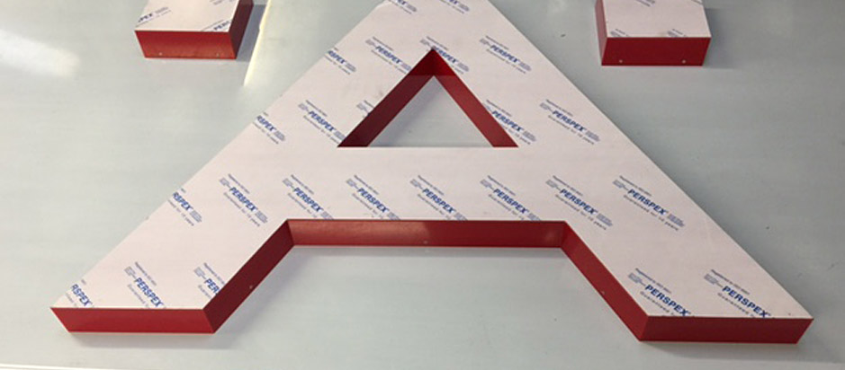 - Built up letters. Illuminated (generally using LED's) or non iluminated using stainless steel, copper, brass, aluminium and perspex.