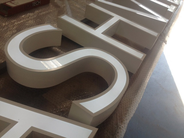 - Built up letters. Illuminated (generally using LED's) or non iluminated using stainless steel, copper, brass, aluminium and perspex.